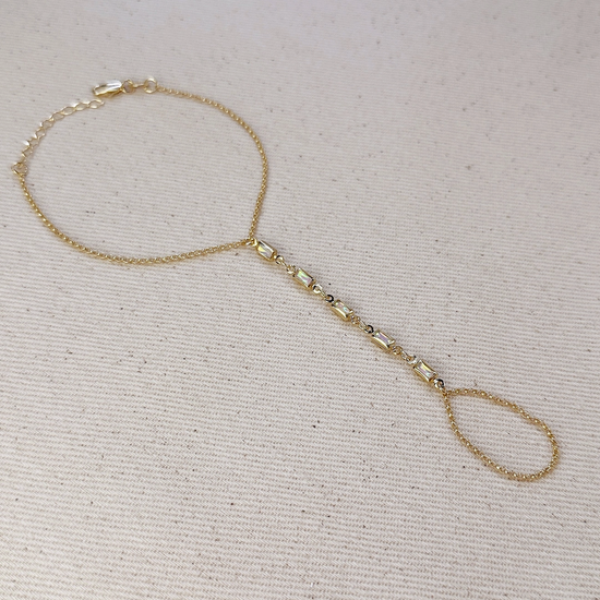 * Metal: 18k Gold filled * Size: 6 inches + 1.5 extender chain. * Hand chain: 2 inches * Adjustable * Hypoallergenic * Water-resistant * Handcrafted in Brazil