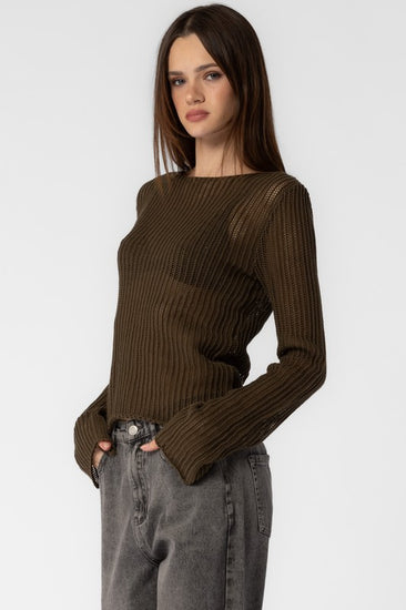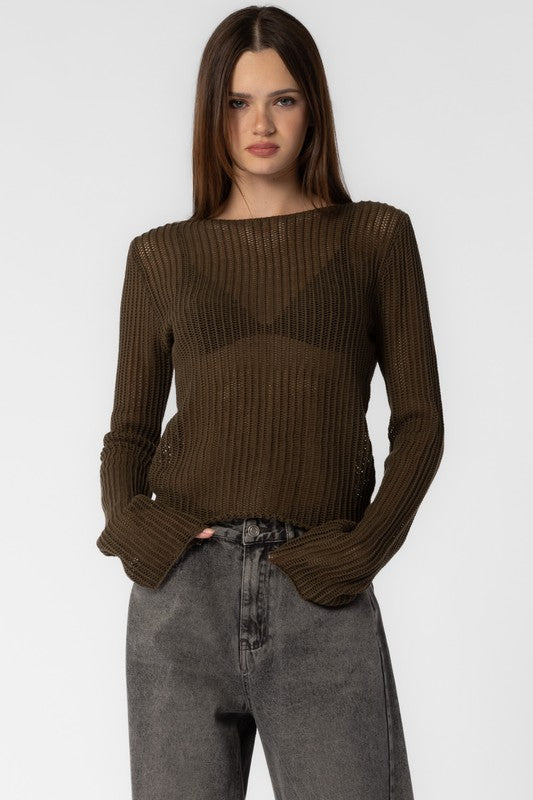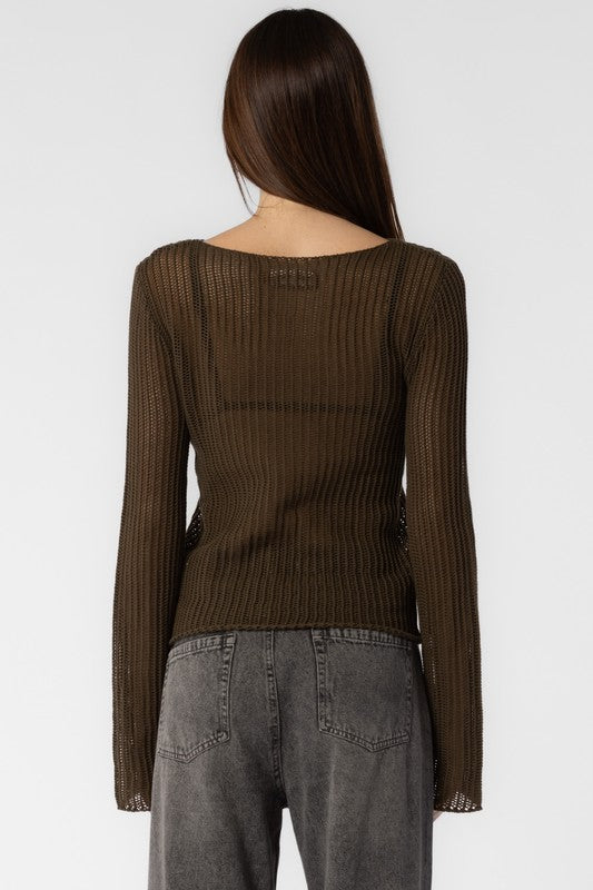 Knit/Cotton sweater giving a crochet feel in a gorgeous dark green color!
