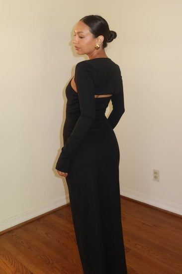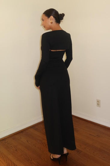 Your classic black maxi but with a modern touch! We love this little detachable bolero.