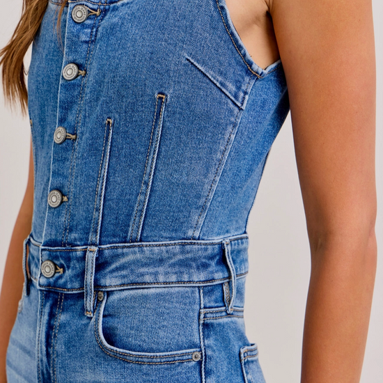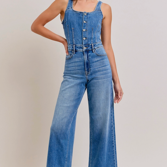 We love denim around here! This fully buttoned jumpsuit is made up of the softest and moveable denim. Dress her up or wear her casually, whatever you decide, you will be turning heads! Also, TGA (tall girl approved)