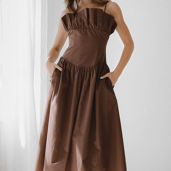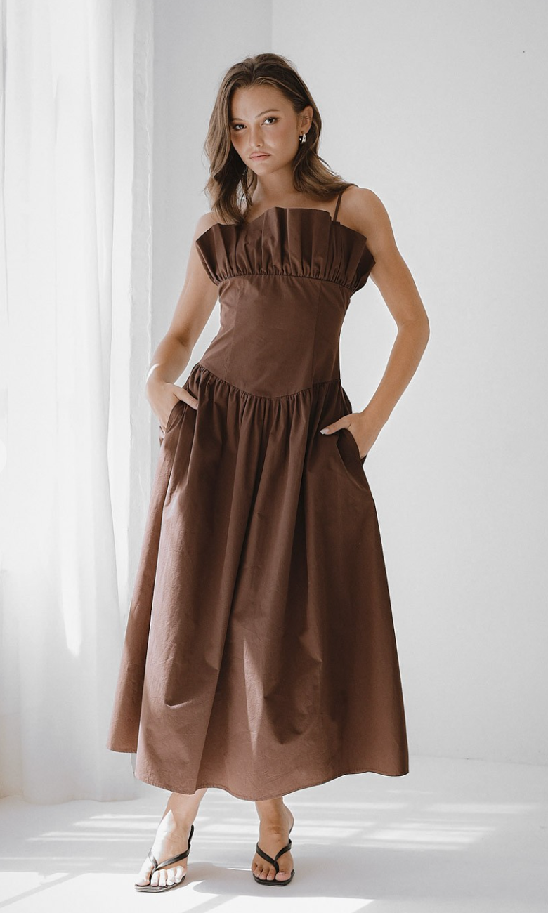 This dress makes me want to schedule a HH ASAP. A closet staple that's trendy and timeless. Chocolate the color of the season.
