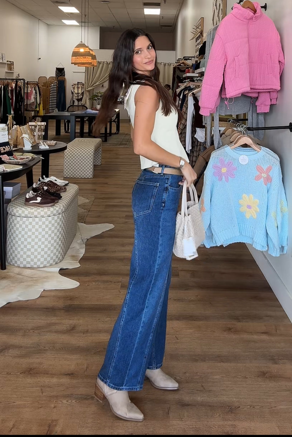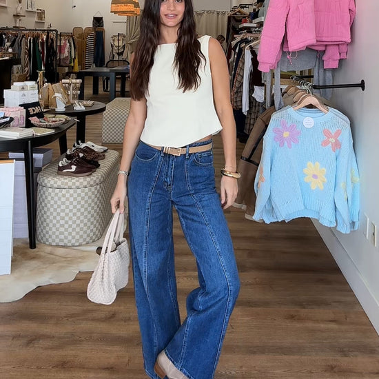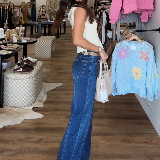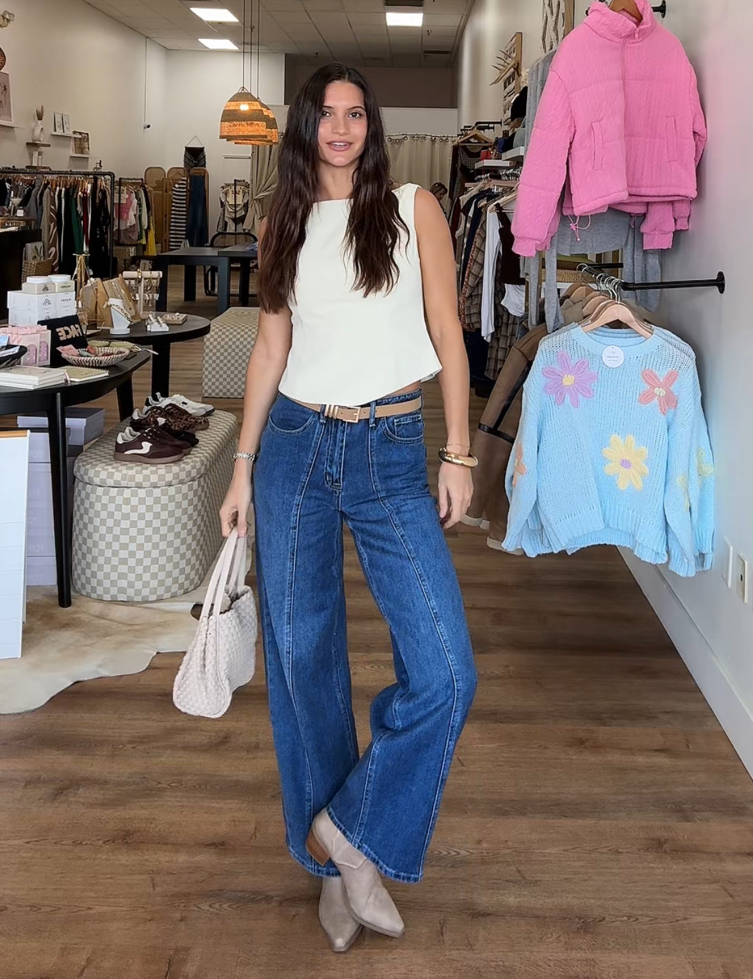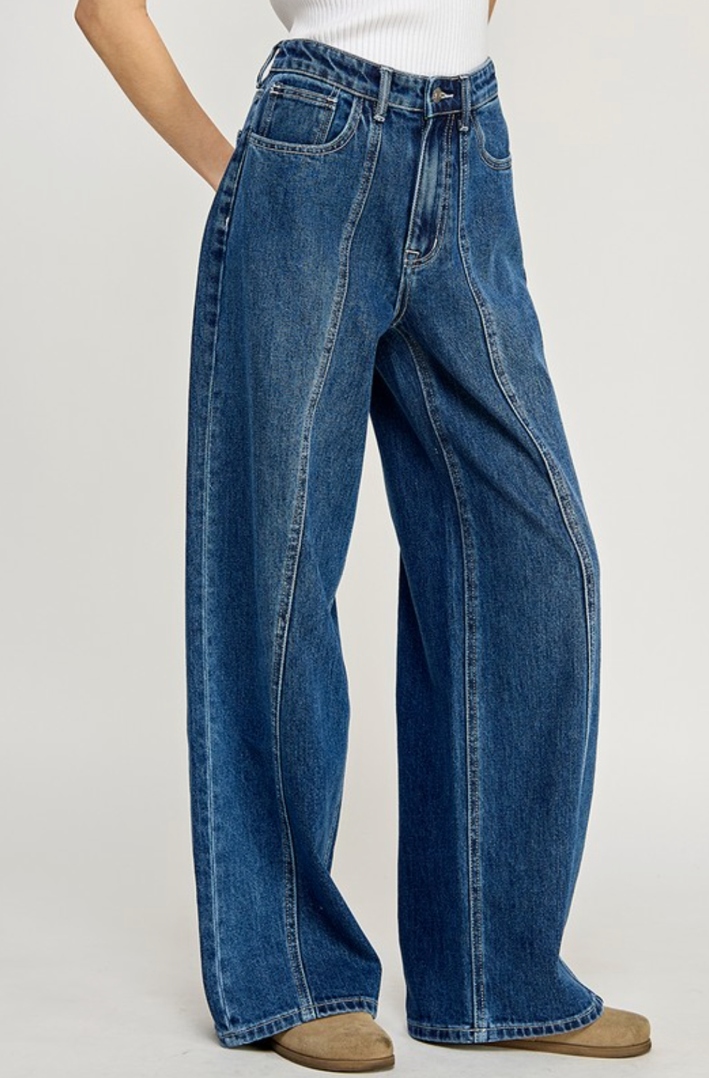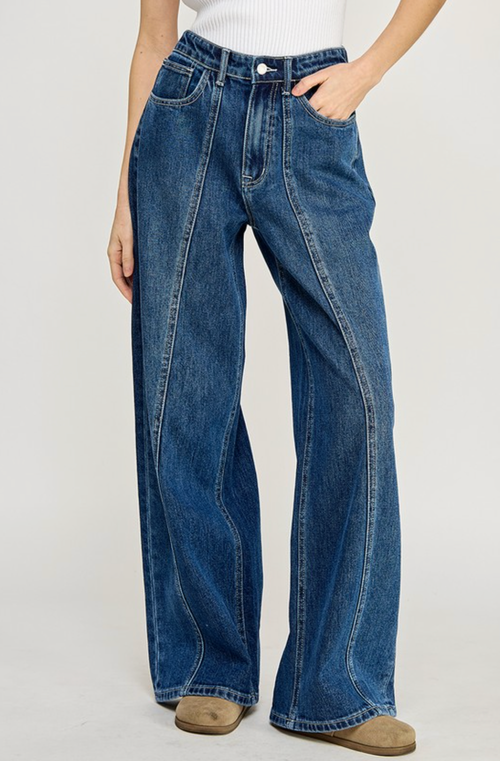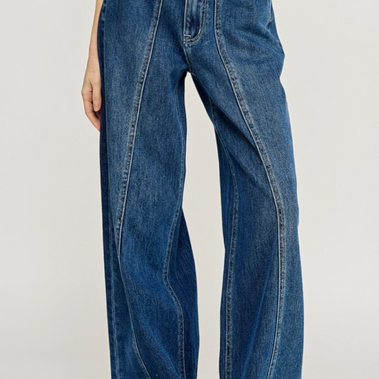 -These jeans feature a high waist with a zipper closure. It made with high quality and super soft handfeel. These jeans have two side slant pockets and a straight leg with a seam detail.