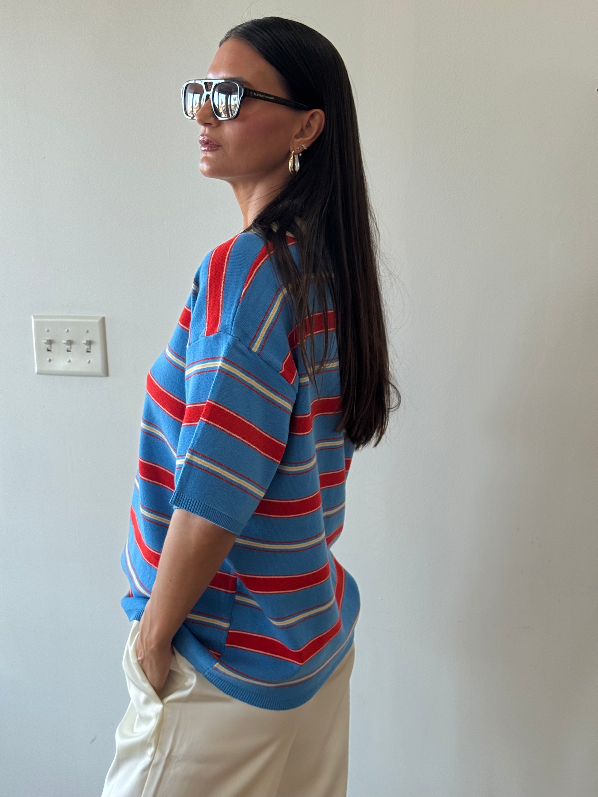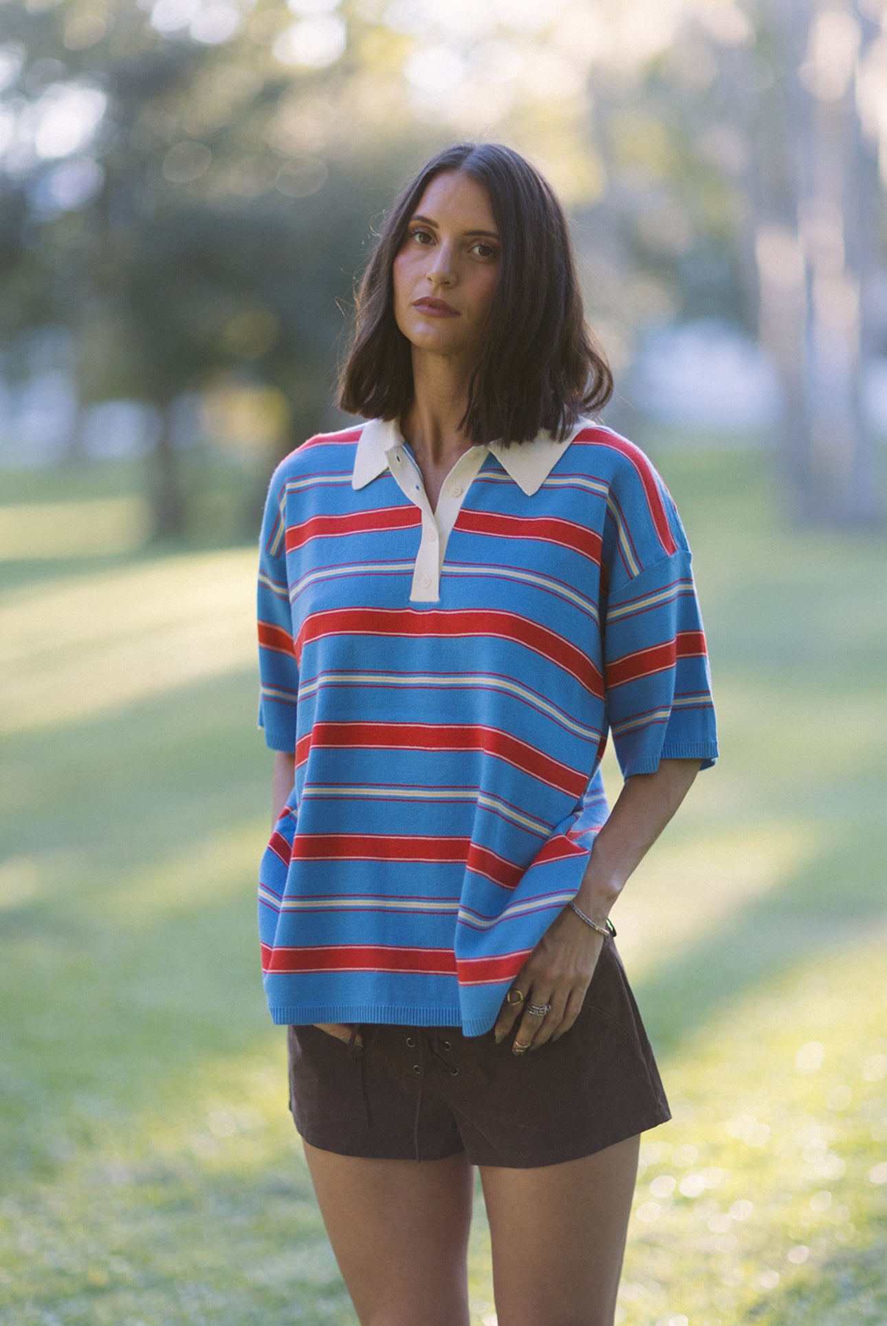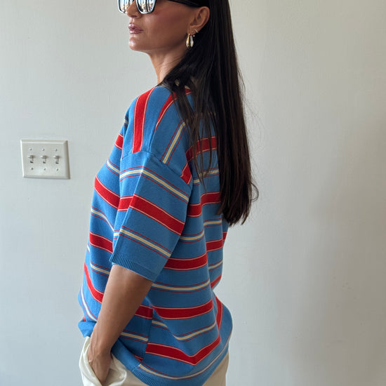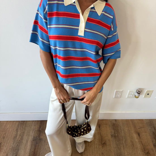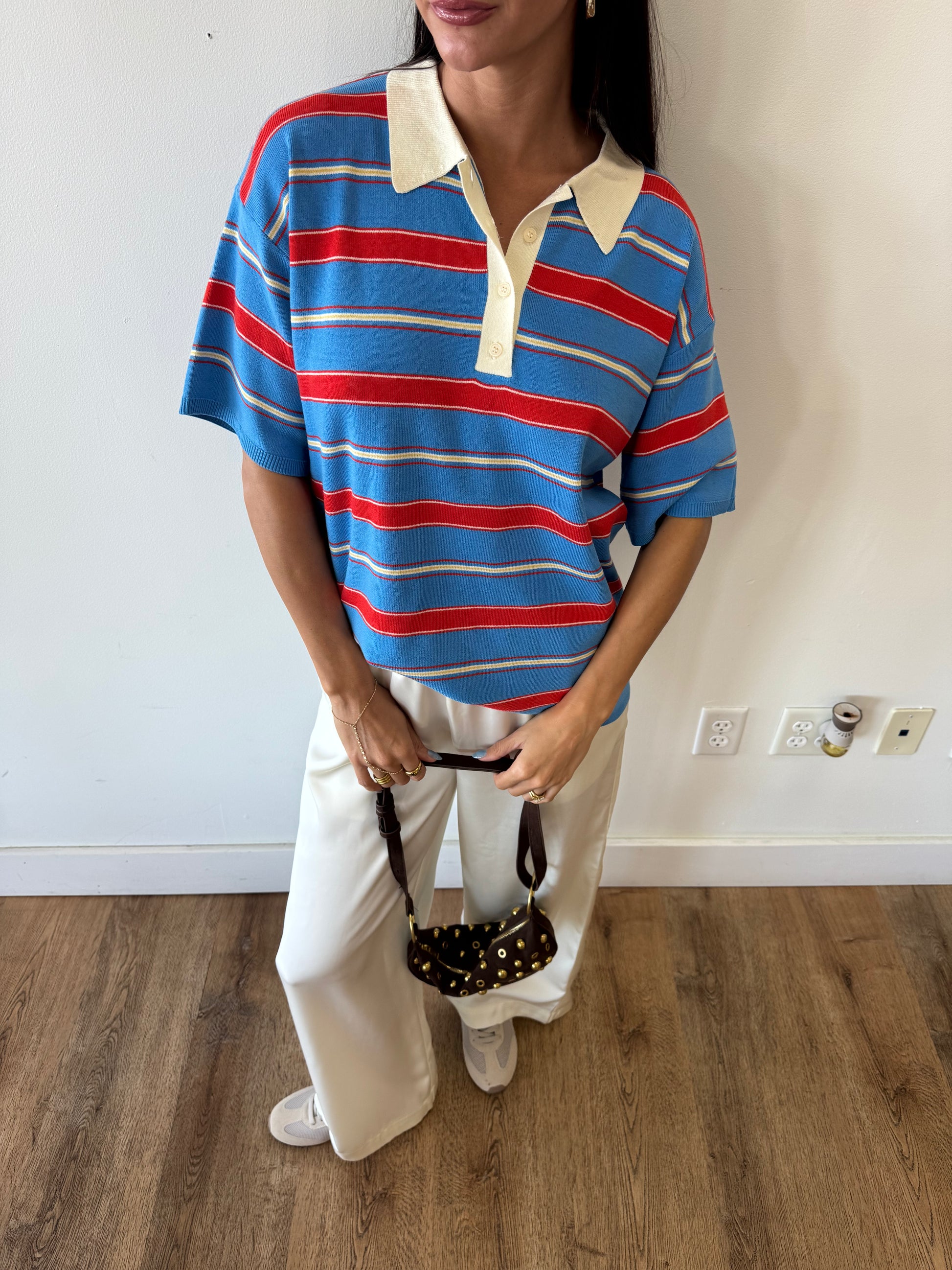 Give us all the polo tops. The blue/red/white combo has us obsessing over this one specifically. Oversized fit giving that effortlessly cool vibe.