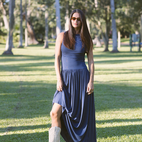 A gorgeous fit and flowy maxi in the color of the season: deep blue. Our Elliot maxi dress is featured with stretchy fabric, a high neck, and ruching in all the right places leaving this look both comfortable and elegant.