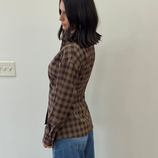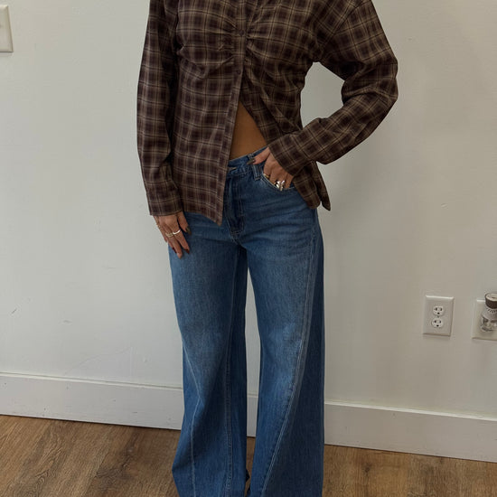 Add a touch of timeless charm with the Long Sleeve Plaid Button-Up. Featuring a classic plaid pattern and full button-front closure, this shirt offers easy layering and all-day comfort. The long sleeves make it a year-round staple-perfect for wearing on its own or styled over tees and tanks. From casual outings to cozy days in, this piece brings laid-back style with a classic edge.