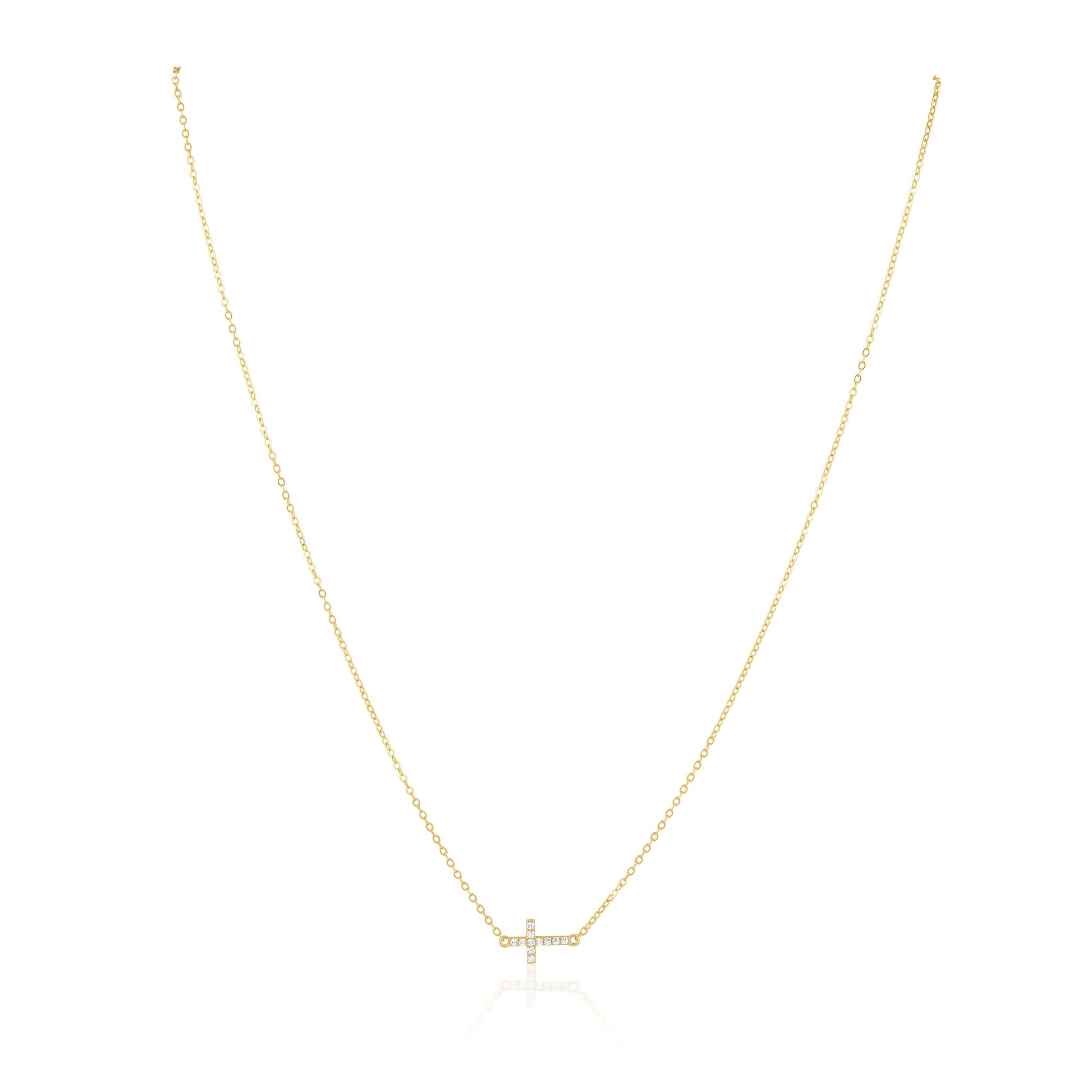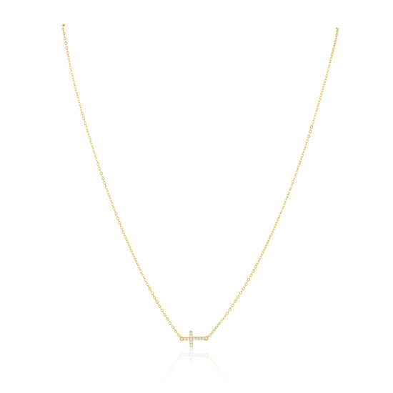 Add a touch of elegance to your outfit with our Pave Side Cross Necklace. Featuring a stunning pave design, this necklace is the perfect accessory for any occasion.