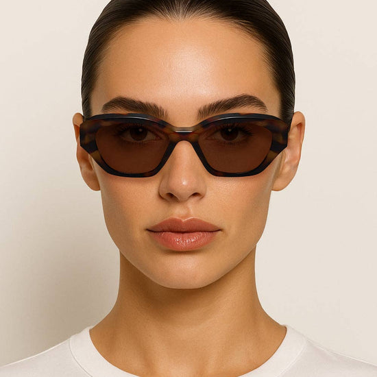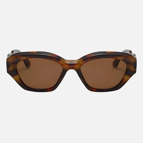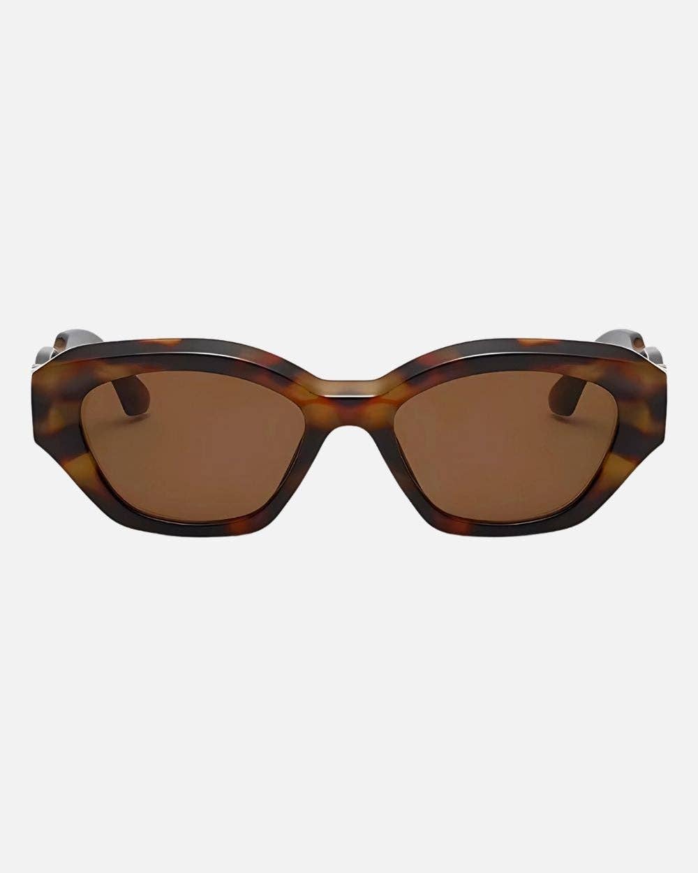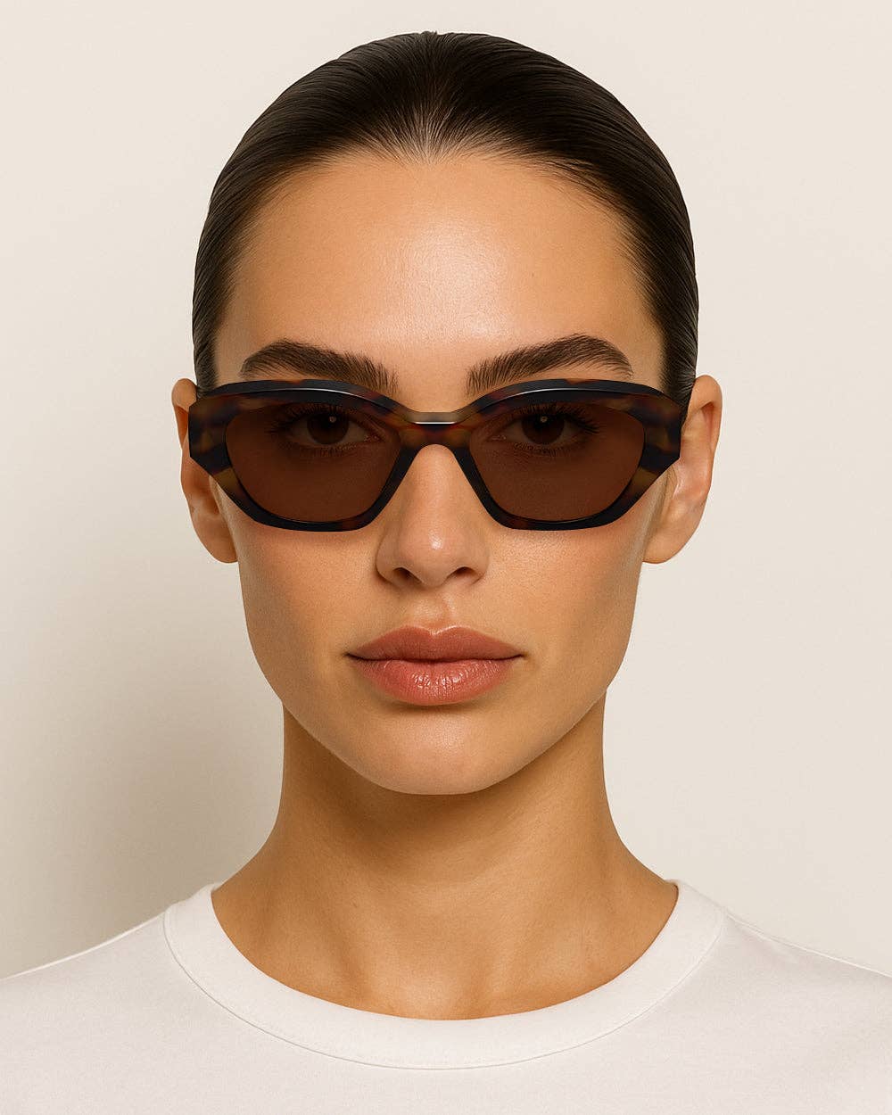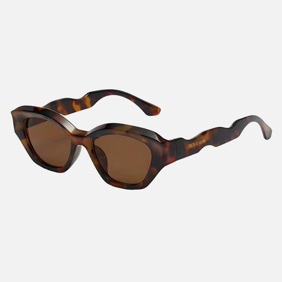 Kell polarized sunglasses stand out with their chunky oval frame and sculpted wavy arms for a playful twist on a classic shape. Equal parts bold and whimsical, Kell adds personality to any look, whether in sleek black, neutral tortoise, or a fresh pop of green. These sunnies feature a durable, high-quality frame with glare-reducing polarized lenses and 100% UV protection. Includes Fifth & Ninth transparent travel case.