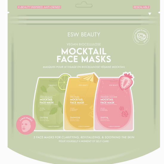 Includes: - Piña Colada Revitalizing Biocellulose Mocktail Mask - Coco Lime Mojito Clarifying Biocellulose Mocktail Mask - Strawberry Coco Rosé Soothing