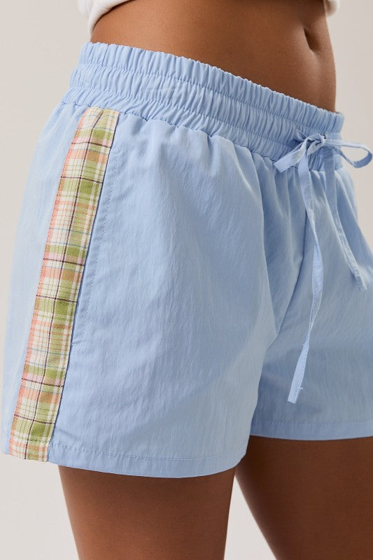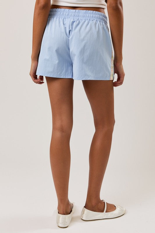 Your everyday sporty short but make it cute. These easy, pull-on track shorts feature a comfy elastic waistband and the sweetest plaid side detail for a little extra something. Lightweight, breezy, and made for everything from coffee runs to beach walks 💙