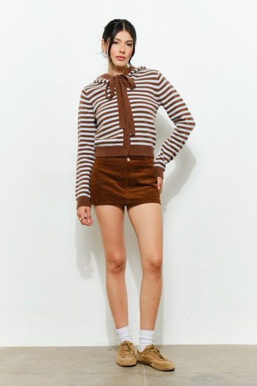 Layer up in style in our Palmer Hoodie Cardigan! With bold stripes and a chunky knit, this piece combines the ease of a hoodie with the polish of a button up cardigan.