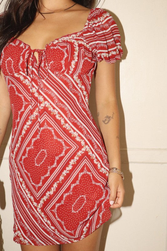 Cutie cap sleeve mini in the perfect red paisley print. Side zipper!