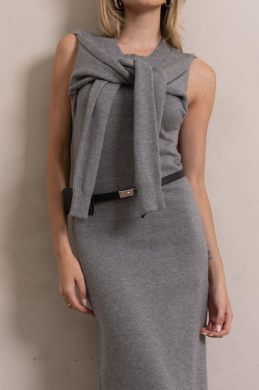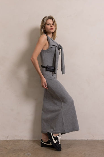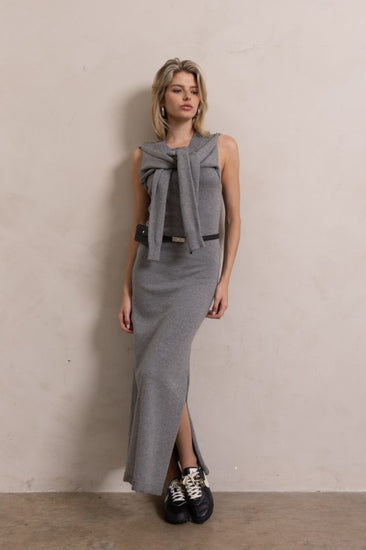 Have the chicest moment in our Prodigy Sweater midi. She's detailed with tie scarf detail, sweater material and side slit. Guaranteed to turn heads and compliments!