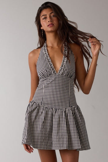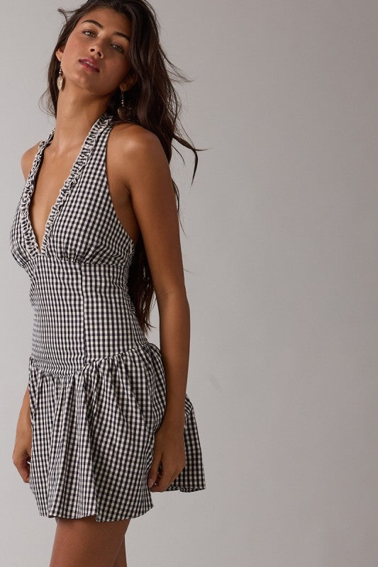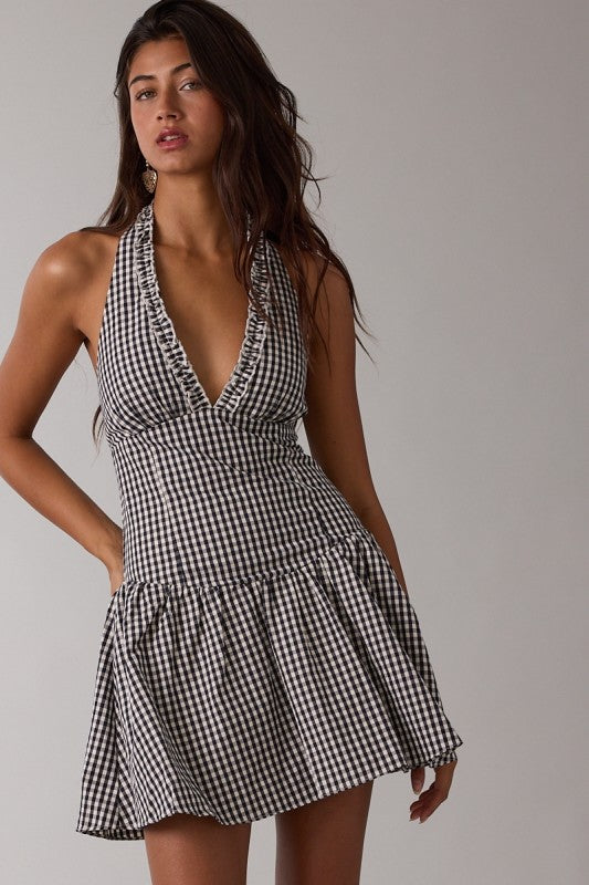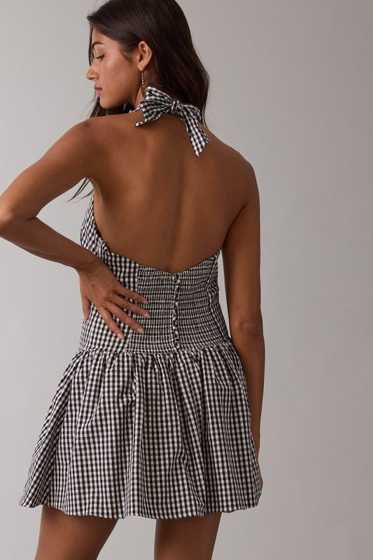 Navy gingham print halter fit & flare mini dress... JUST DARLIING!