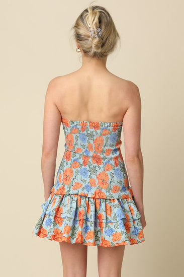 Your next vacay dress is calling. This strapless smocked mini hugs you just right up top and drops into the cutest flouncy skirt for that effortless, flirty feel. The bold floral print is giving Euro summer energy—just add a tan and a spritz 🍊✨