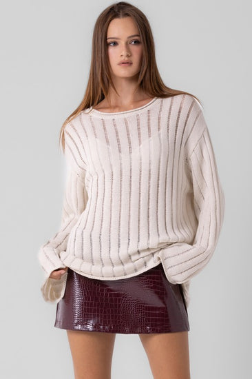 An oversized knitted sweater that is perfect for the warmer fall days.