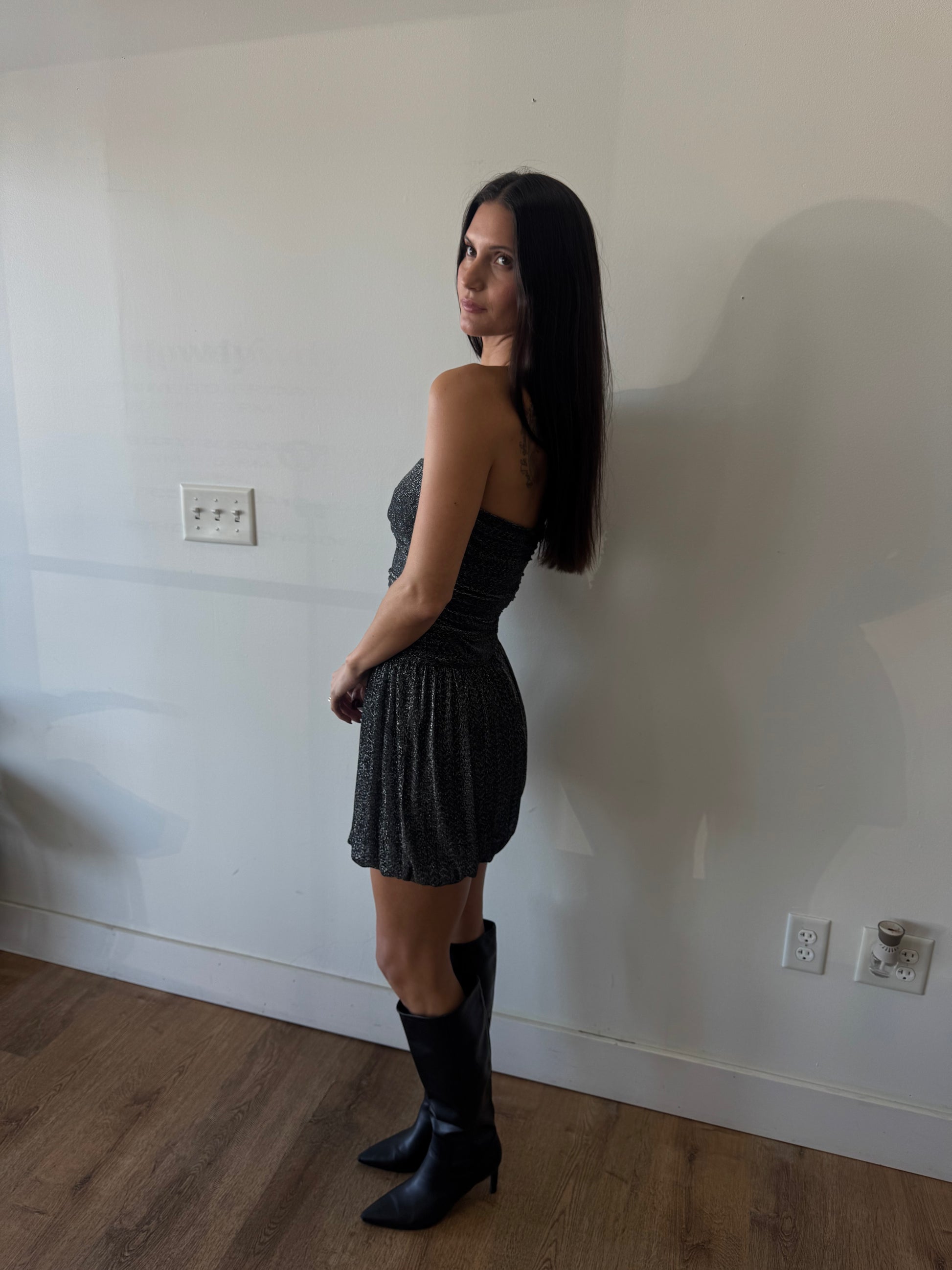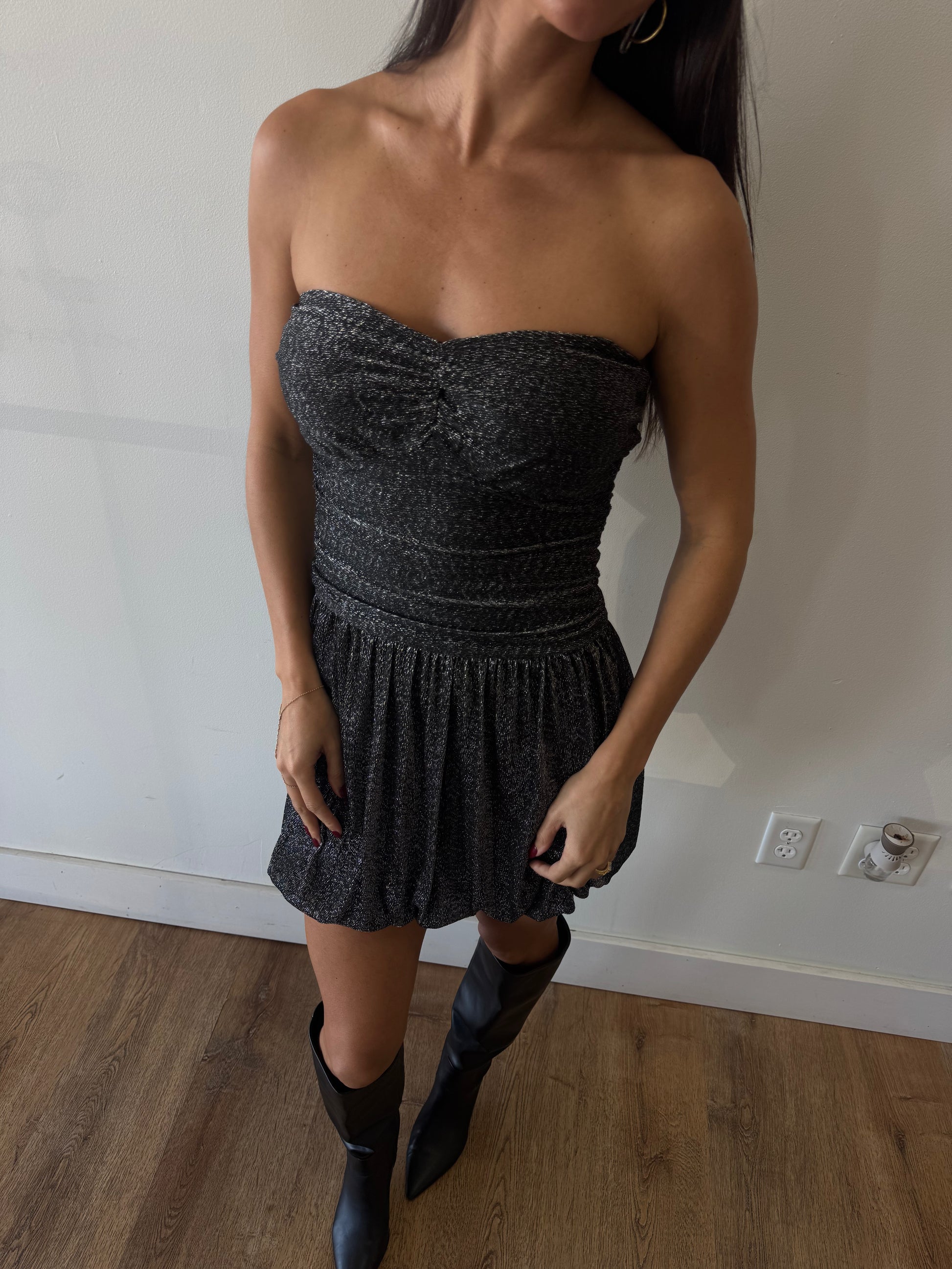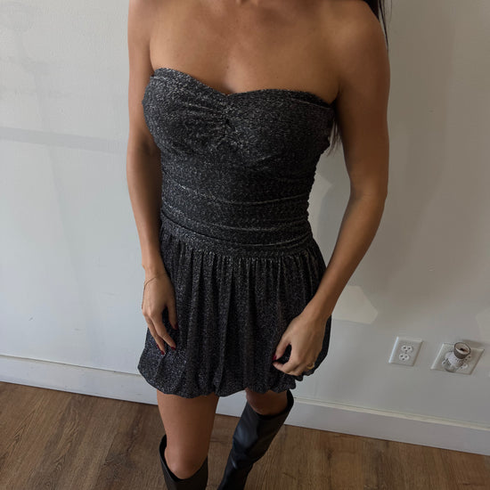 Turn heads for all the right reasons in this petite black shimmer bubble dress. Pair this dress with your go-to heels and statement shoulder bag for a glam finish we can't get enough of this season.