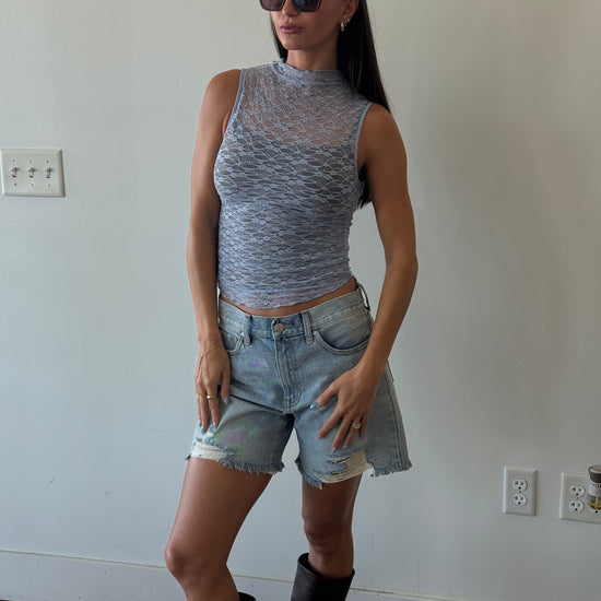 -Model measurements: bust-34b - waist 25/26 - hips 35 - height 5'9. Model wearing a small.