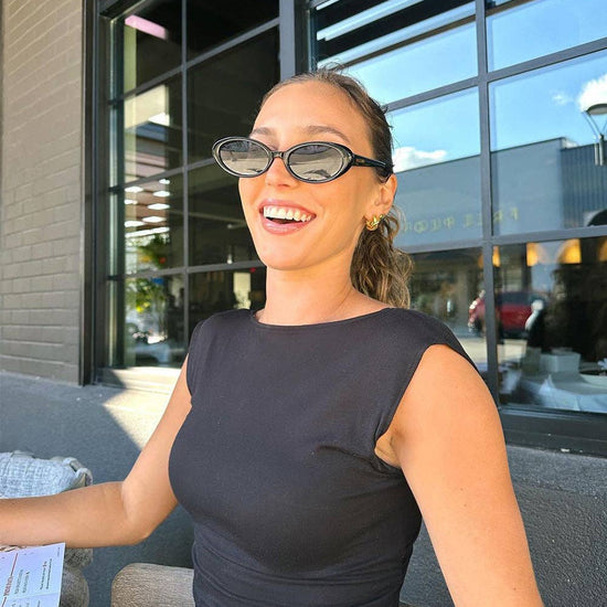 Taya Polarized Sunglasses are your go-to for a sleek, minimalist look with major impact. The petite oval frame comes in black, torte, and caramel—perfect for effortless everyday styling. Whether you choose polarized or standard UV lenses, Taya keeps your eyes covered in style. These sunnies feature a durable, high-quality frame with glare-reducing polarized lenses and 100% UV protection. Includes Fifth & Ninth transparent travel case.