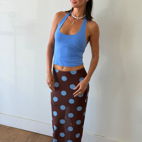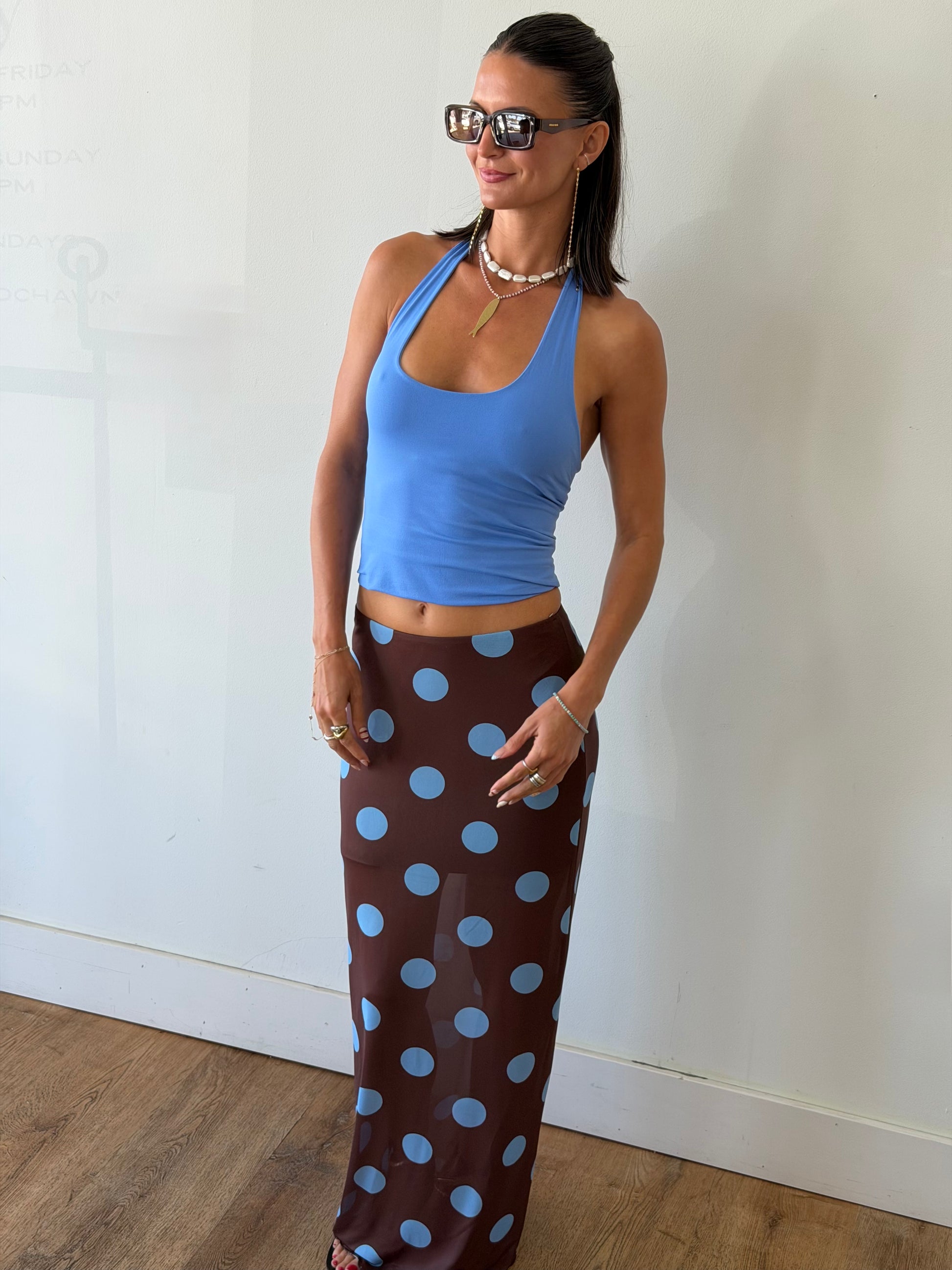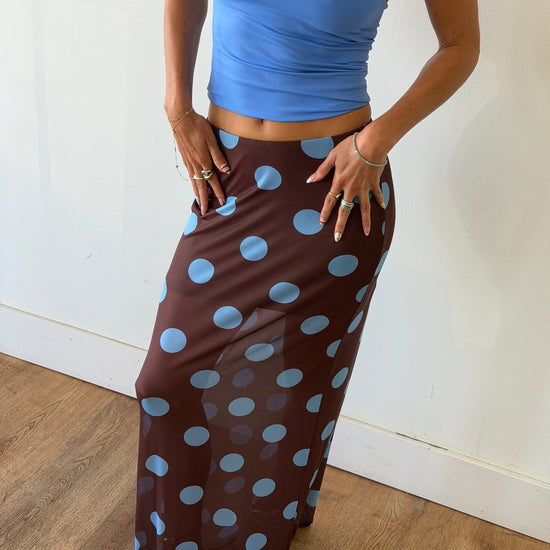 She’s flirty, a little sheer, and sooo fun 🤎 This mesh maxi features a bold polka dot print with a flattering, body-skimming fit. Perfect for beach days over a bikini or styled with a tank for an effortlessly cool night-out look.✨