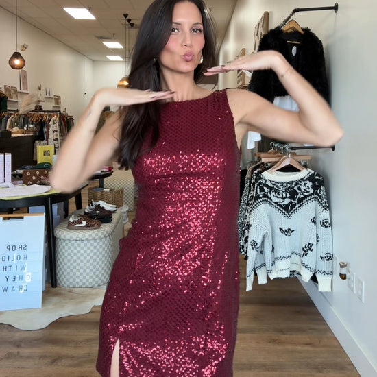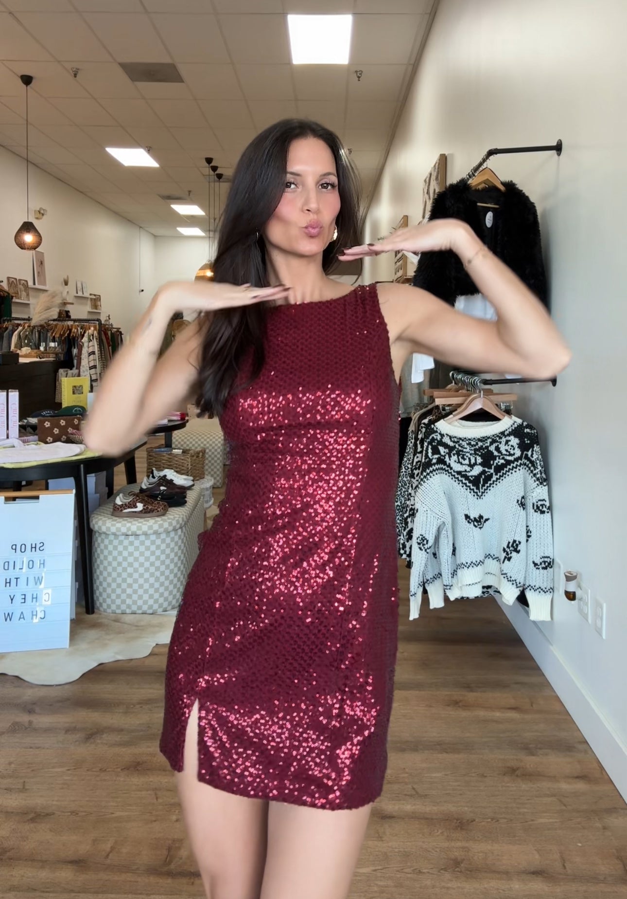 You will steal the spotlight in our stunning mini dress. We are obsessed with its glam sequin fabric. Perfect for a holiday party or a special birthday celebration.