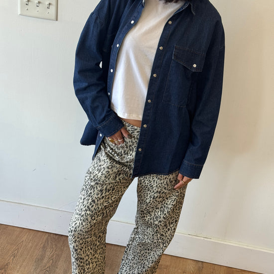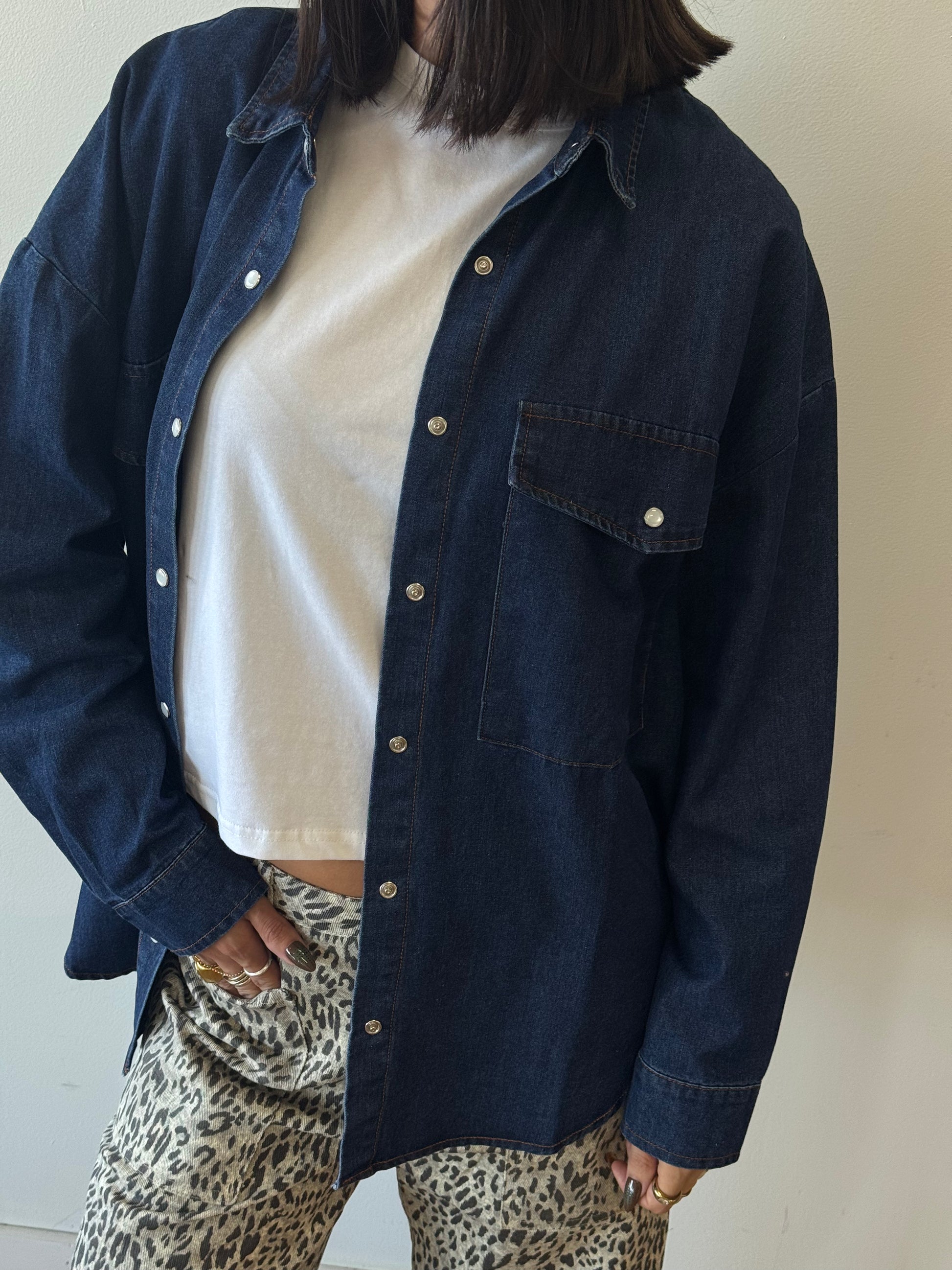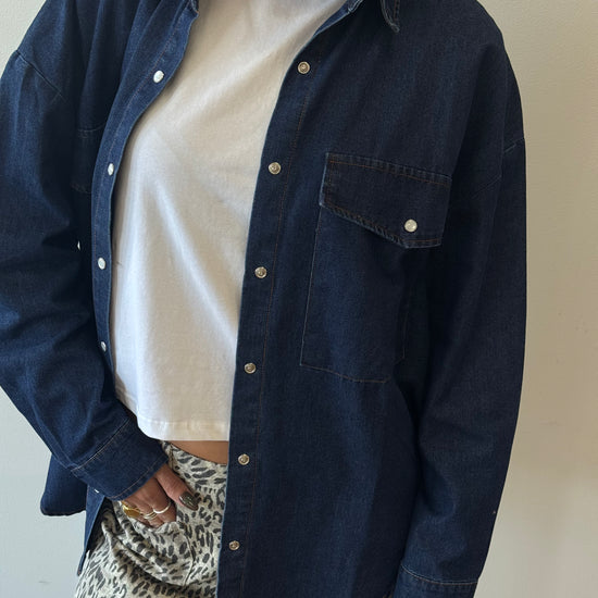 The perfect washed denim shirt for layering this fall. Wear opened or closed. Oversized fit.